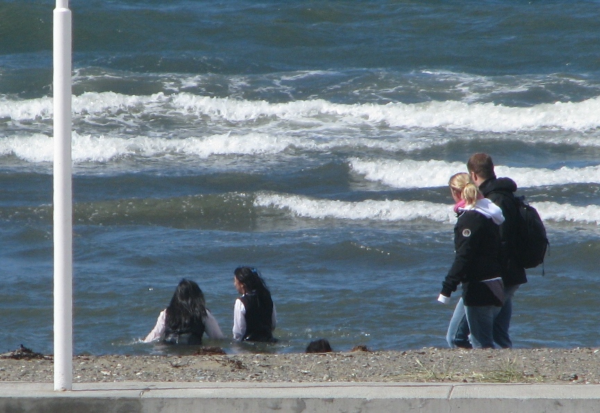 Punta Arenas devine tot mai mica, pe masura ce o cunosc tot mai bine. In jurul hotelului sunt cateva scoli si elevii sarbatoresc fericiti terminarea anului scolar (si venirea ‘verii’) printr-o baie in ocean (desi atat apa cat si aerul au o temperatura de doar cateva grade :)).