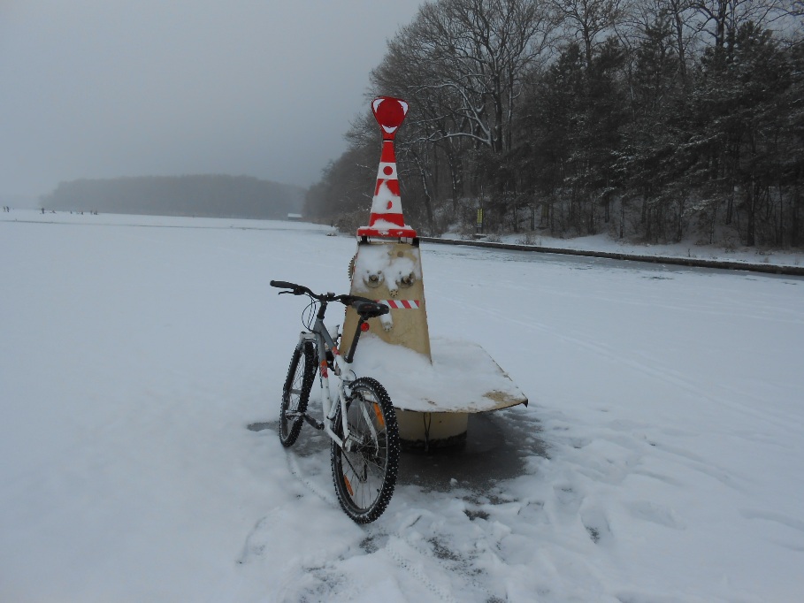 DSCN0598O sa te aresteze politia!! O sa te alerge pompierii!! O sa te caute scafandrii pe sub gheata!! Ai 2 copii acasa, nu te gandesti la ei? Ai grija sa nu te duci pe copca!!!… si multe astfel de griji si reactii (intemeiate, daca judecam dupa „stirile” TV la care ma uitam pana acum 3 ani:)) au fost provocate de anuntul postat pe FCB in urma cu cateva zile, prin care invitam amatorii de drumetii & biking sa mi se alature pentru o tura pe lacul Snagov, de la Ciofliceni pana la Manastirea Snagov. Ideea imi venise acum o saptamana, dupa ce vazusem pe lac cativa pescari care ‘dadeau la copca’, iar unul dintre ei venise cu bicicleta…