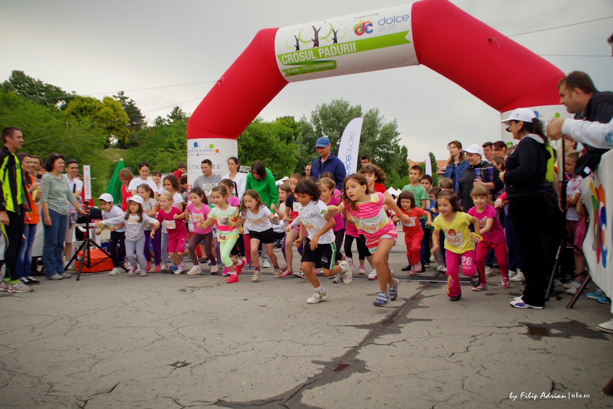 copiiiVarsta minima: o luna, varsta maxima: 70 de ani. Asta este ‘plaja’ varstei participantilor la Crosul Padurii, editia 2013. Daca bebelusii si copiii sub 4 ani au ‘alergat’ in carucior sau in carca la mami / tati, cei peste 4 ani au luat lucrurile in serios si au deschis evenimentul de sambata printr-o competitie foarte acerba… Evident, vremea a tinut cu copiii si ploaia a ocolit Parcul Tineretului pe parcursul probelor de la categoriile 4-7 ani si 8-13 ani.
