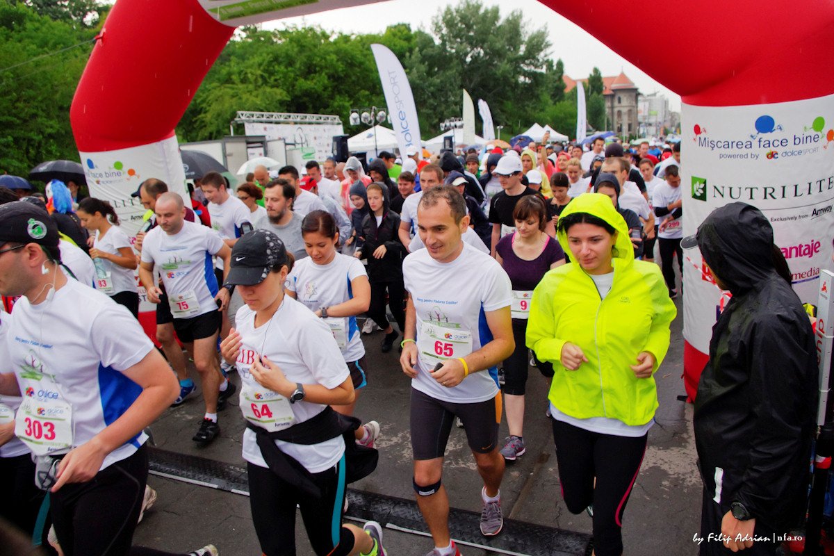 startO ora mai tarziu, cei aproape 800 de alergatori adulti isi faceau incalzirea si ultimele pregatiri pentru startul celor 10, respectiv 3 kilometri. Imbucurator, desi aceste distante par mici, au fost numerosi participanti care le-au alergat in premiera si, cu siguranta, nu se vor opri aici (dupa 3 urmeaza 5; dupa 10 urmeaza 21; dupa 21 urmeaza 42…si tot asa!). Spre deosebire de conditiile meteo de la semimaratonul Bucuresti, ploaia (sau, mai degraba ploicica) inceputa inainte de start lasa loc de multe recorduri personale…