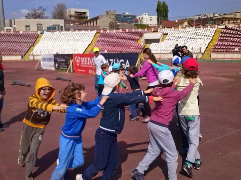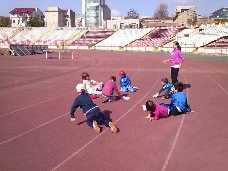 Atelierul a avut loc pe 27 aprilie, s-a numit „Cum sa alergam ca Speedy Gonzales?!”, iar locatia – pista de atletism din complexul Dinamo. Primul lucru care mi-a venit in minte a fost – defect profesional 🙂 – „cum pot transforma acest atelier intr-o experienta WOW?!”. Raspunsul creierului meu a fost: „transformandu-l intr-o joaca!”. Pasul urmator a fost de a cauta pe internet jocuri pe care le putem organiza in aer liber, iar oferta este extrem de mare (puteti gasi un exemplu aici)!