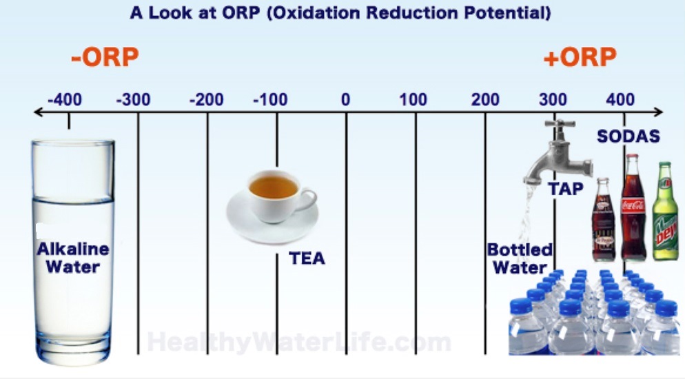 Apa acida are un ORP mare al ionilor pozitivi de hidrogen (H+). Apa ozonizata are un ORP ridicat datorita numarului mare de atomi de oxigen liberi care sunt foarte atrasi de electroni. Prin urmare, ORP-ul are o valoare pozitiva ridicata, dar din alt motiv. Apa acida nu ar trebui administrata intern. Apa cu ozon este cea mai indicata.