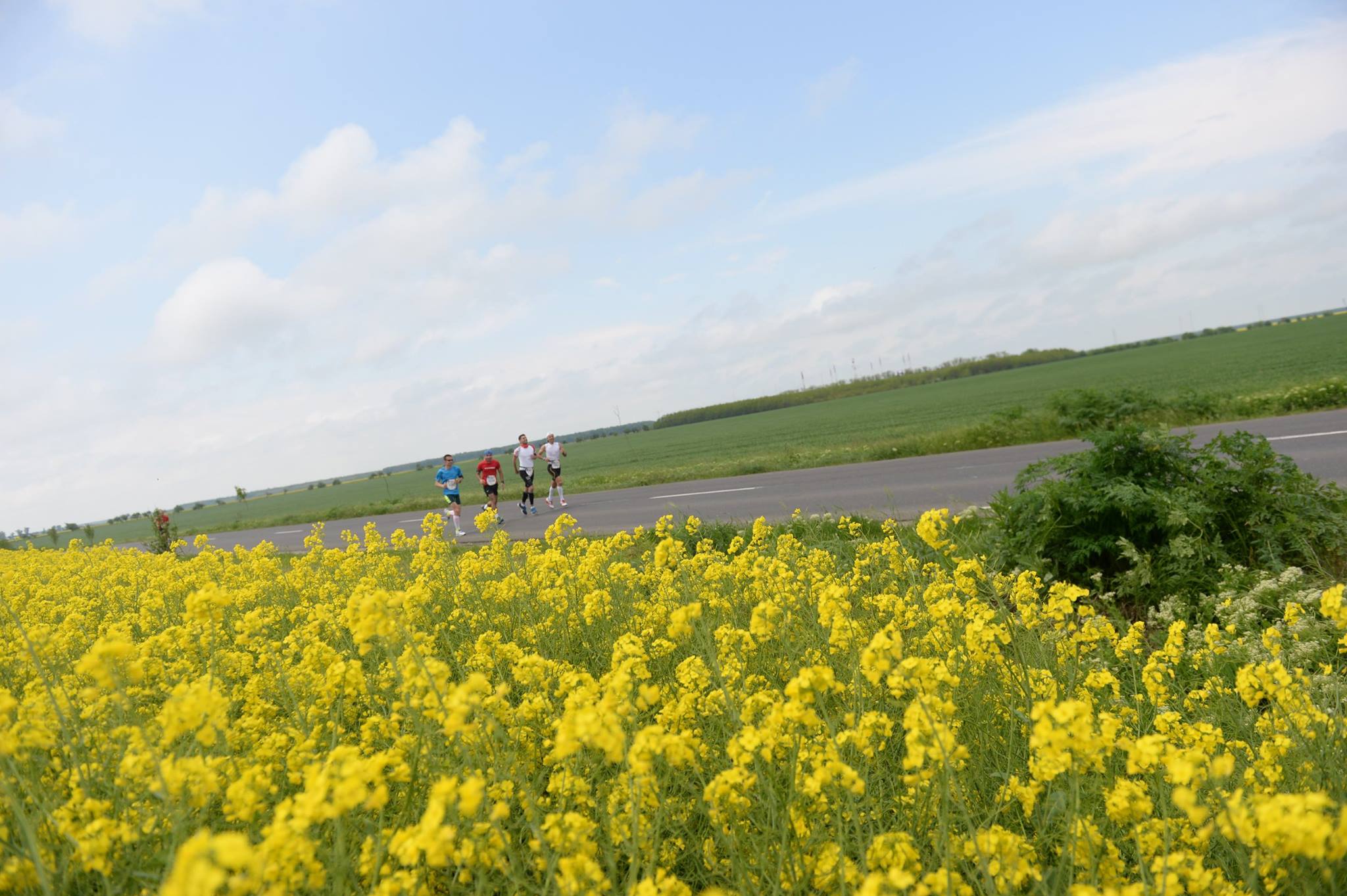 Traseul. Viziunea mea despre vechiul drum spre mare era cea a unei sosele plate, cu diferenta de nivel zero. M-am inselat si am platit pretul, multiplele urcari (nu foarte dificile, dar…urcari!) indepartandu-ma – in special dupa kilometrul 22-23 – de obiectivul pe care mi-l stabilisem. O surpriza placuta a reprezentat-o multimea adunata pe marginea drumului, in fiecare sat si comuna prin care am trecut, care ne-a incurajat si ne-a aplaudat, chiar daca (sau tocmai pentru ca :)) unii dintre spectatori tocmai ieseau din birt. Mi-au placut la nebunie si campurile de rapita, care au colorat in galben traseul nostru…