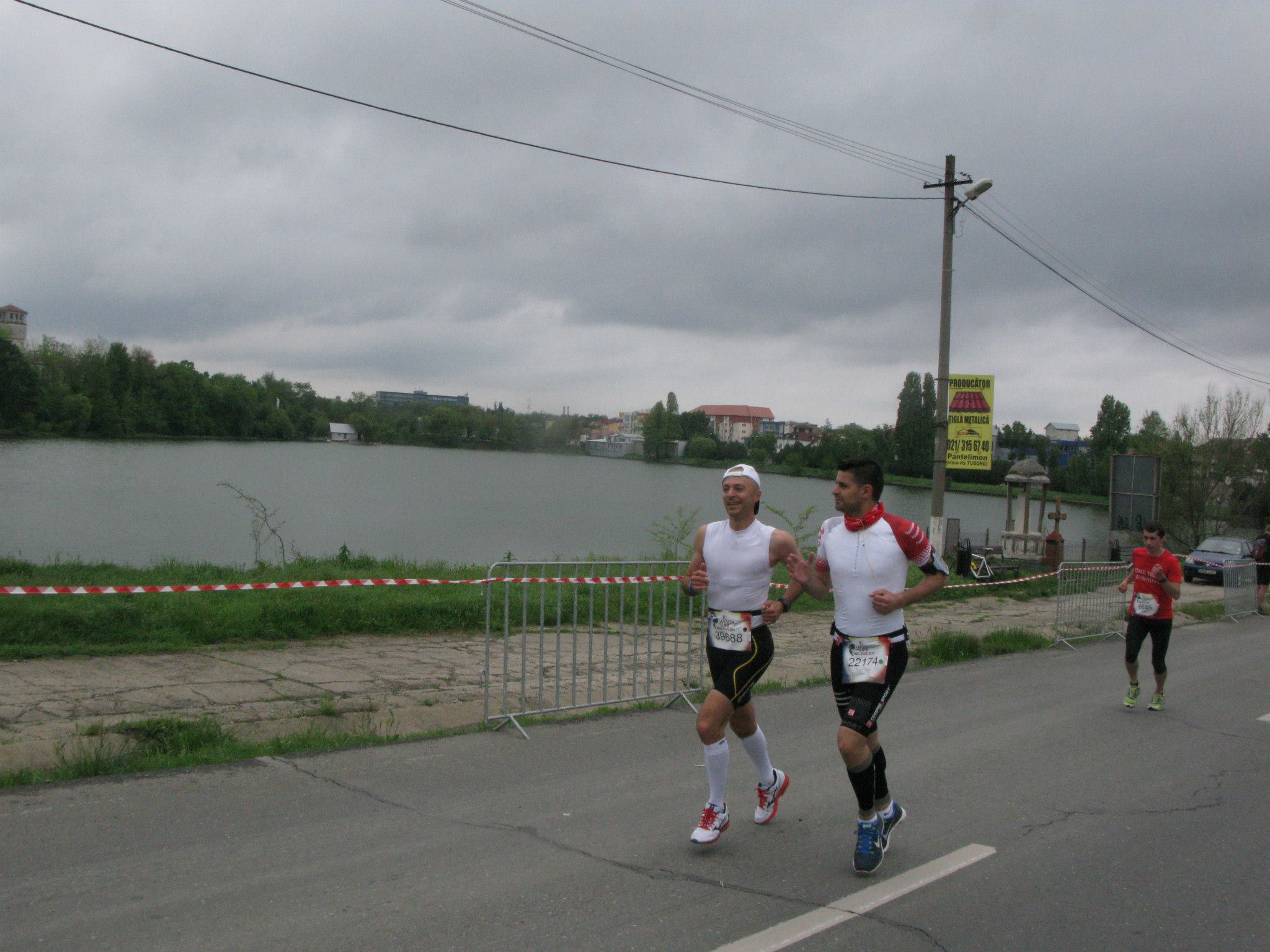 Cu cateva zile inainte de cursa apelasem, prin intermediul acestui blog, la un biciclist care sa ma ajute cu „pacing”-ul, dar lista cu ciclisti agreati de catre organizatori se inchisese, asa ca imi luasem gandul de la acest subiect. Noroc cu Bogdan Florescu, un alergator pe care l-am cunoscut la unul dintre antranamentele mele de ‘intervale’ si care s-a oferit sa ma insoteasca – cel putin pana la kilometrul 21 – avand un PB la semimaraton in jur de 1h 30m.
