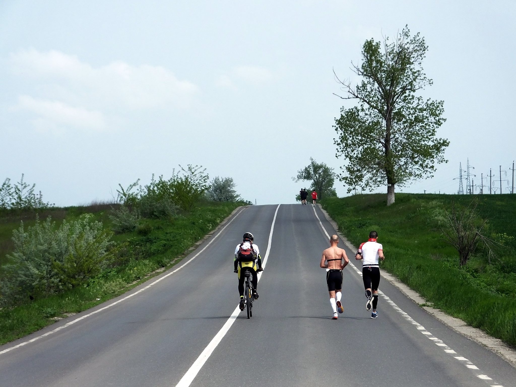 „Trezirea” mi-a fost data la iesirea din Fundulea de catre unul dintre voluntarii aflati pe bicicleta – Vali Bugoi (Smart Atletic), coechipier la stafeta de la Triatlonul Delta -, care ne-a anuntat bomba: „Masina de finish tocmai a intrat in Fundulea!” Eram la kilometrul 28, iar primul gand care ne-a venit in minte a fost: „hai sa trecem de km 30!”. Oricat de bun as fi fost la matematica (materie la care oricum nu am excelat :)), mi-ar fi fost imposibil sa calculez timpul in care vom fi ajunsi din urma de catre cele doua masini de finish. Asa ca, strategia noastra a fost simpla: sa fugim cat ne tin picioarele :). …Dar tocmai cand ne confruntam cu cele mai lungi pante!