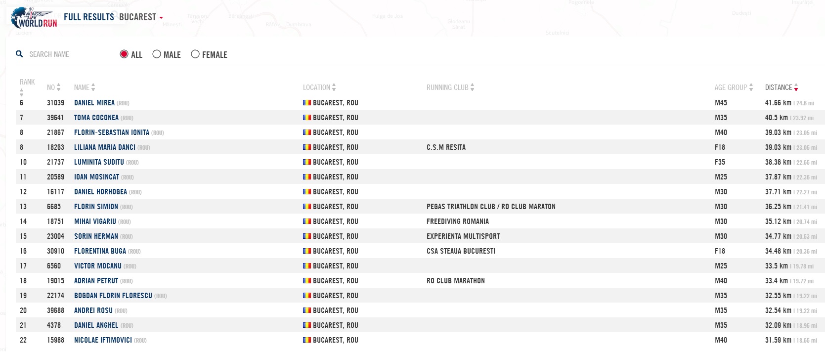 Statistici. In Romania, castigatori au fost Eugen Sorop (un atlet cu o poveste impresionanta), care a reusit sa parcurga apropae 59 de km (4.11 min / km!), respectiv maratonista Liliana Danci (39 km) –vezi clasamentul aici. Ca premiu, Eugen si Liliana isi vor putea alege locatia in care vor alerga urmatoarea editie :).