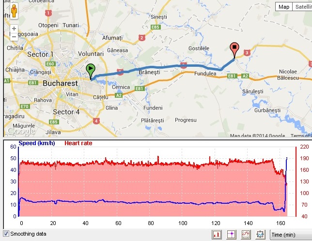 (+) Ce a functionat: strategia de nutritie si incarcare, opriri zero pe traseu (o premiera pentru mine!), echipamentul, mentinerea ritmului (cu mici exceptii :)), incalzirea, refacerea (dureri si febra musculara inexistente), alergarea cu „pace maker” (merci, Bogdan!).