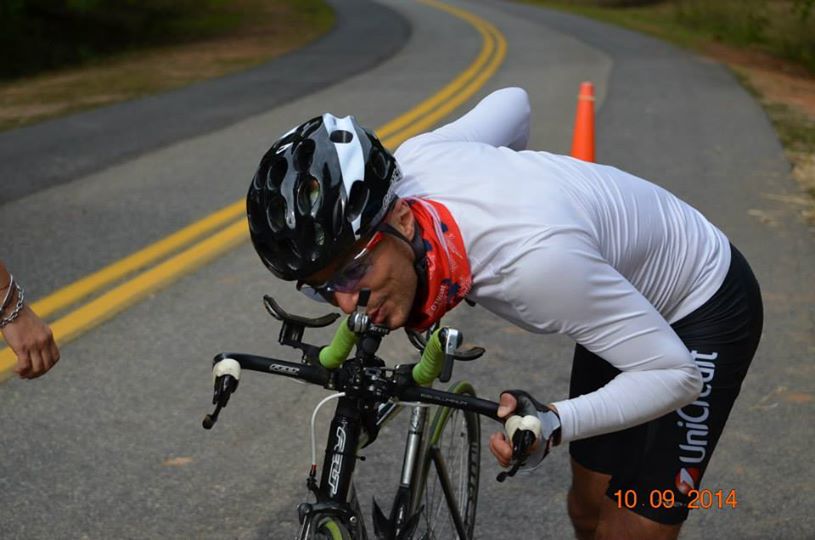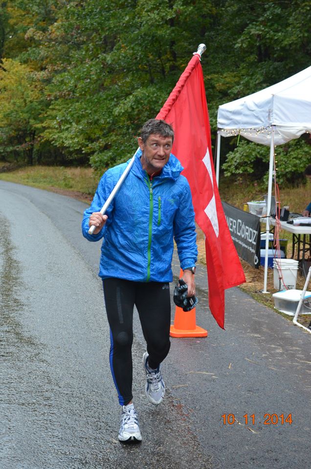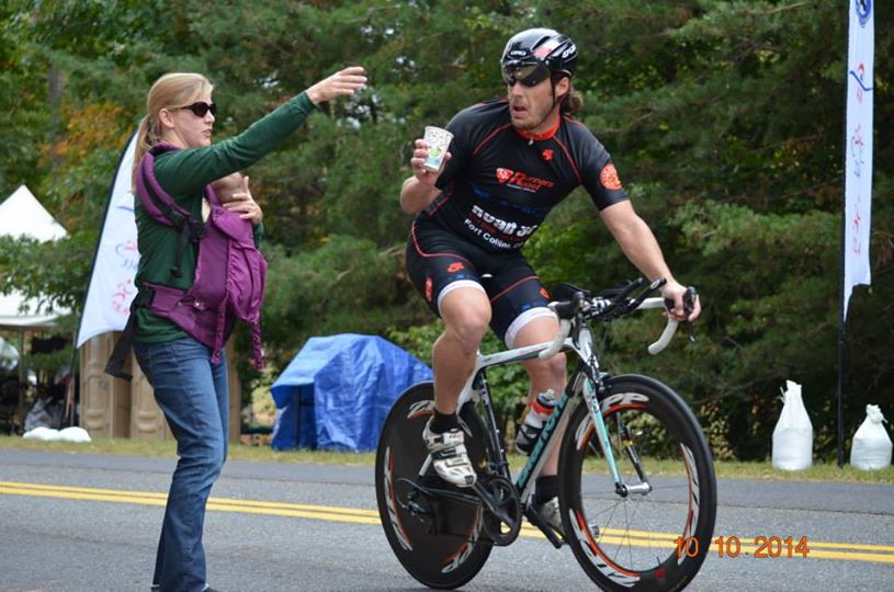 Pe David Jepson l-am cunoscut anul trecut, la Double-ul din Florida. Pe circuit plat, David a doborat record dupa record, terminand Double-ul intr-un timp extraordinar: sub 22 de ore (cu un split excelent – 10.52 la bike si 8.41 la alergare)! Interesant este faptul ca David nu exceleaza in Ironman-urile ‚clasice’; mi-a spus ca nu a terminat niciodata vreunul in mai putin de 10 ore. Anul acesta a venit in Virginia pentru a isi apara titlul, in pofida unor dureri de spate care l-au facut sa abandoneze o cursa similara desfasurata asta vara in Oregon. Impreuna cu el, ca ’support’, este sotia sa si fiica lor – Anna, in varsta de 3 luni. De ce o cheama Anna? A fost conceputa anul trecut, dupa Double Ultra Tri, Virginia (desfasurat in Lake Anna State Parc). Ma intreb cum s-ar fi numit copilul lor daca ar fi fost baiat… Era simpatic sa o vezi pe doamna Jepson tinand-o pe Anna la piept, in sling, si alergand cu bidonul de hidratare in mana pentru a i-l da lui David.