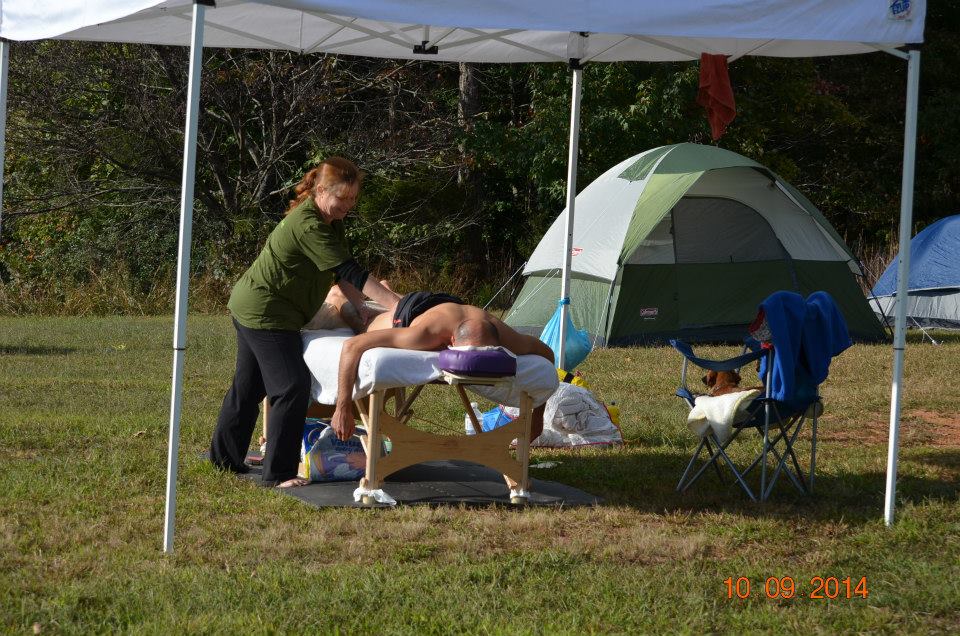 Revenind la masaj, Sarah – o terapeuta cu o vasta experienta in evenimente ultra – m-a ajutat sa fac cateva exercitii de stretching care m-au pus intr-un mood excelent de alergare. Am profitat de experienta ei pentru a afla „care sunt problemele comune pe care le au ultratriatlonistii la astfel de evenimente”. Mi-a spus sa am grija de gambe si de tendoane. M-a felicitat pentru folosirea jambierelor de compresie si mi-a sugerat sa le pastrez pana la final (si vreo 2-3 zile dupa aceea). Mi-a sugerat, de asemenea, sa alerg cat mai mult pe iarba de langa aleile betonate si sa pun pe glezne „a lot of ice” daca ma opresc mai mult de 10 minute.
