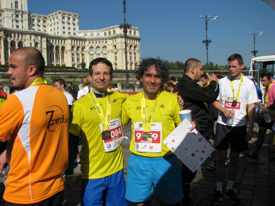 Celalalt castigator al unei invitatii este Valeriu Mangu (cel din dreapta 🙂), care a avut norocul de a se naste pe 25 aprilie – ceea ce coincide cu data evenimentului The Color Run din Bucuresti :). Pe Valeriu l-am cunoscut in urma cu aproape un an, cand s-a inscris in programul de Coaching In Alergare, pe care tocmai il lansasem. Obiectivul lui de atunci a fost „sa invat sa alerg corect si eficient”, dar a dobandit, la finalul programului, si „un inceput de dieta mai aproape de ceea ce imi doream, intr-un timp mai scurt fata de cel pe care l-as fi petrecut cercetand singur” (plus un motiv suplimentar de a scapa de fumat :)). Ca sa citez, in continuare, din formularul de evaluare completat de Valeriu la finalul programului (multumim pentru feedback, Vali!): „mi-am perfectionat stilul de alergare, tehnicile de incalzire si revenire, am o viziune mult mai clara asupra obiectivelor mele, mi-am descoperit nivelul de constiinta din care actionez, am dobandit noi obiceiuri nutritionale, ma culc si trezesc devreme (interval 5-6) , am cunoscut oameni asemenea mie, am mai multa incredere in propria persoana”. Si, spre incantarea noastra, Valeriu a fost un foarte bun ambasador al programului, convingandu-si sotia (Andreea) sa participe, la randul ei, in CIA.