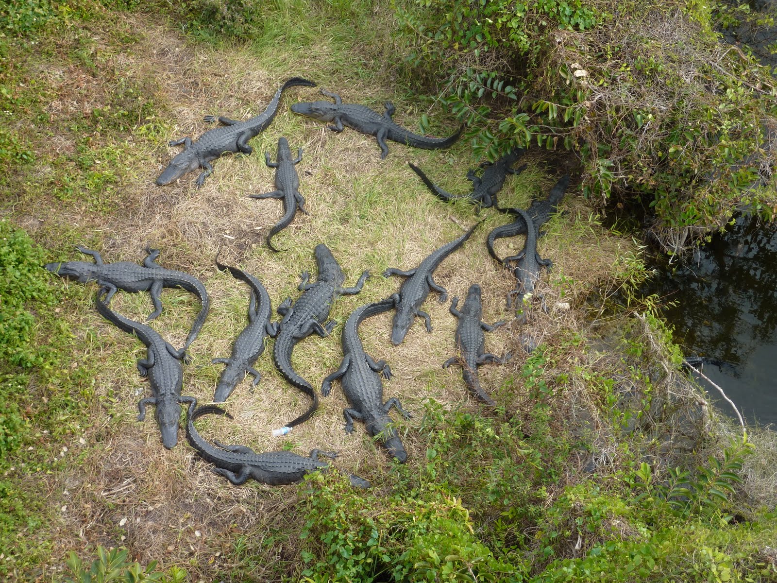 Oprirea noastra in Everglades a durat aproximativ 2 ore, timp in care Oana a facut o tura printre crocodili, cu vestitele “airboat”, iar subsemnatul a incercat sa isi refaca puterile dormind in masina… Fireste, ne-au distrat indicatoarele de pe sosea care ne atentionau sa conducem usor pentru ca “panthers crossing” sau “crocodiles crossing”; nu am vazut pe sosea nici pantere, nici crocodili, dar indicatoarele respective ne-au “incurajat” sa nu avem tentative de a opri si cobori din masina… Urcand spre Tampa, am strabatut o multime de orasele si statiuni de vacanta (Naples, Fort Myers, Cape Coral, Sanibel, Port Charlotte, Venice, Sarasota), care ne-au lasat cu gura cascata: plaje cat vezi cu ochii, unele salbatice, altele pline de oameni, palmieri, proprietati impresionante (prin bun gust, nu – doar – prin marime), perfectiunea soselelor si a traficului si multe altele… Ne-a mai surprins (placut) numarul ENORM de mare de biciclisti, alergatori si motociclisti. A fost oarecum ciudat sa vedem, de exemplu, intr-o zi de marti, la 7 dimineata, strazile pline de oameni (unii cu varste dincolo de 70 de ani!) antrenandu-se pe bicicleta (exista benzi speciale…) sau alergand printre palmieri. A propos de varstnici, cred ca mai mult de jumatate dintre motociclistii pe care i-am intalnit erau, probabil, trecuti de varsta pensionarii. Bravo lor!!