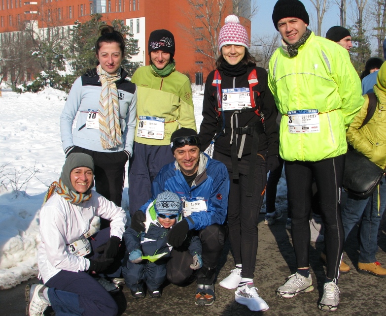 Cu toate lucrurile pregatite de aseara (echipament, haine de schimb, suplimente, termosuri cu isotonic, vitamine, electroliti, alcalinizatoare etc.), singura mea grija azi dimineata (in afara celei de a ajunge la timp :)) a fost de a verifica termometrul. Minus 12 C, dar speranta ca se va mai incalzi pana la 11.30, cand urma sa inceapa cursa. Ceea ce s-a si intamplat, vremea indurandu-se de noi cu cateva grade in plus (cred ca au fost -5, -6, fara vant si cu mult soare :)).